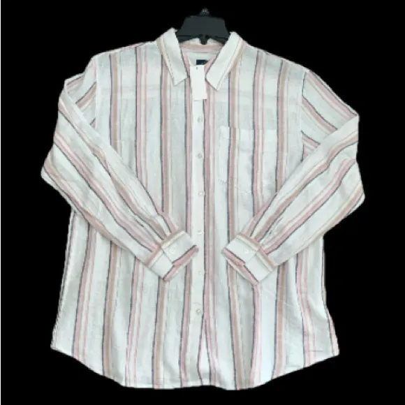 Gap linen blend striped button-up shirt. The search results show similar shirts with varying fits, i... Show more