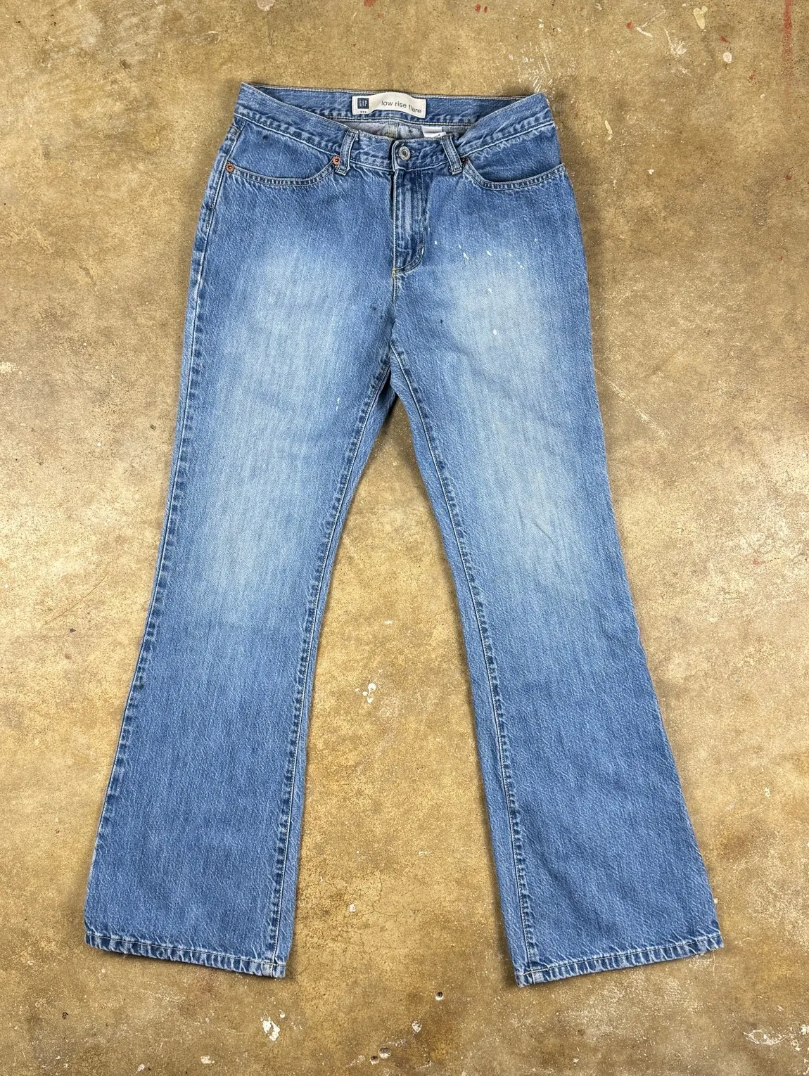 These vintage GAP low rise flare jeans capture early 2000s Y2K style with their faded light wash and... Show more