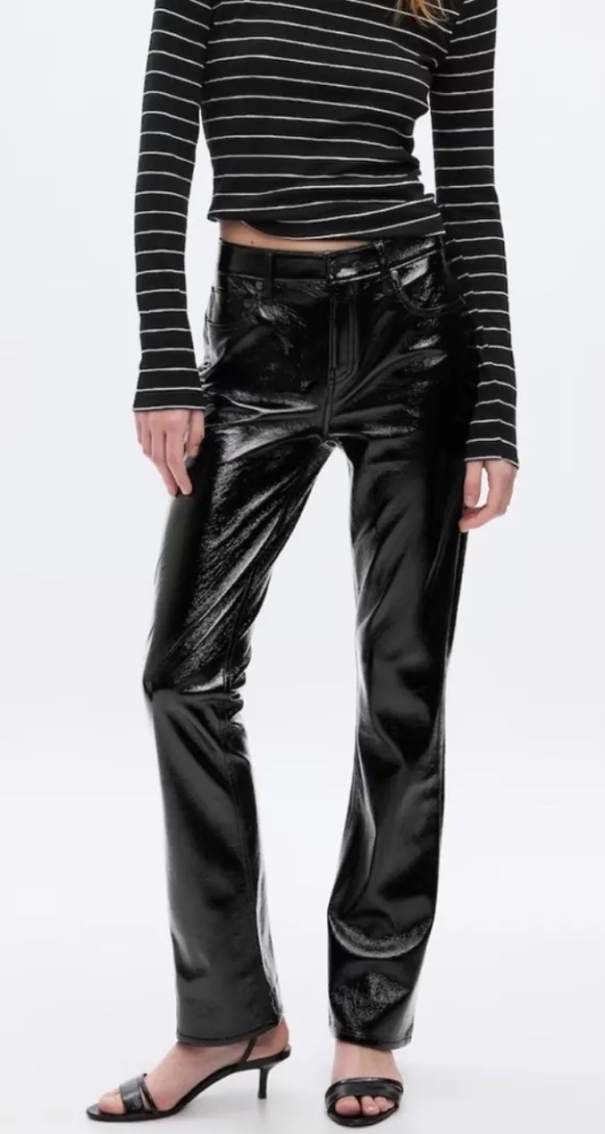 Brand NEW With Tags 🏷️ Gap Mid Rise Black Vegan Patent Leather Baby Boot Pants Size 26 / 2 P / 2... Show more