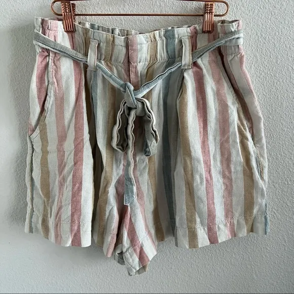 GAP Pastel Striped Linen Paperbag Waist Shorts. Pockets, waist tie, zip clasp front, back elastic.... Show more