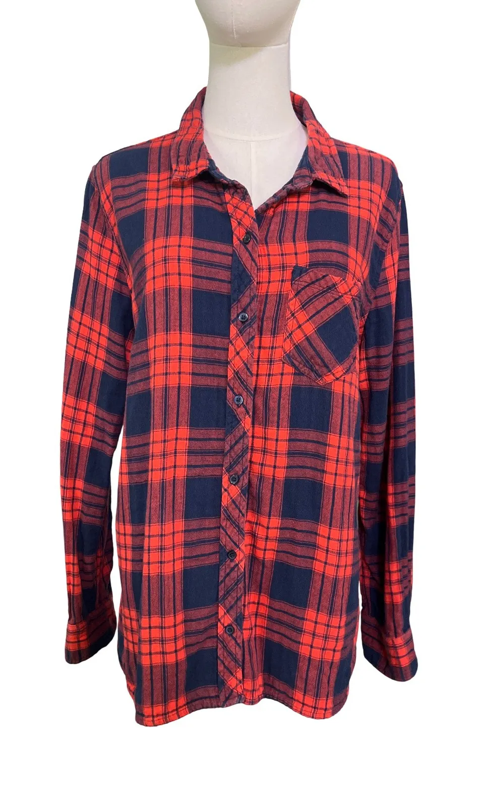 Thick and soft Gap Boyfriend Fit double cloth shirt featuring a red and navy plaid exterior with a c... Show more