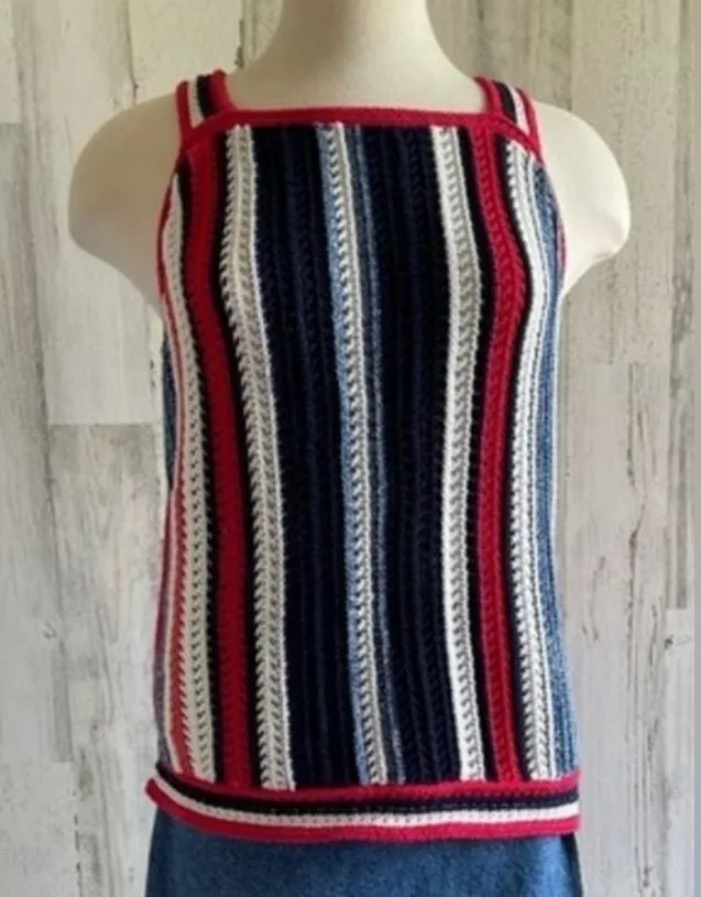 GAP striped crochet knit tank in red white and blue with open back racer style. Perfect for summer f... Show more