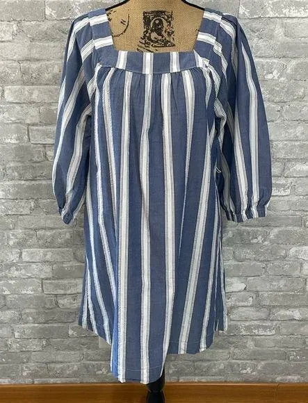 Gap striped dress Square neckline FLAW- missing belt Front pockets