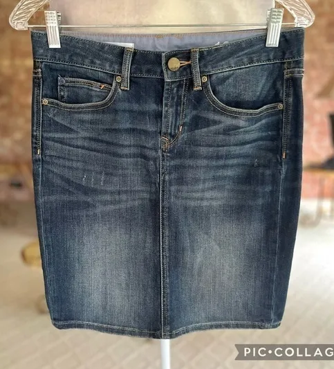 Gap Blue Denim Pencil Skirt ~ faded and whiskered ~ slightly distressed in a couple places ~ soft... Show more