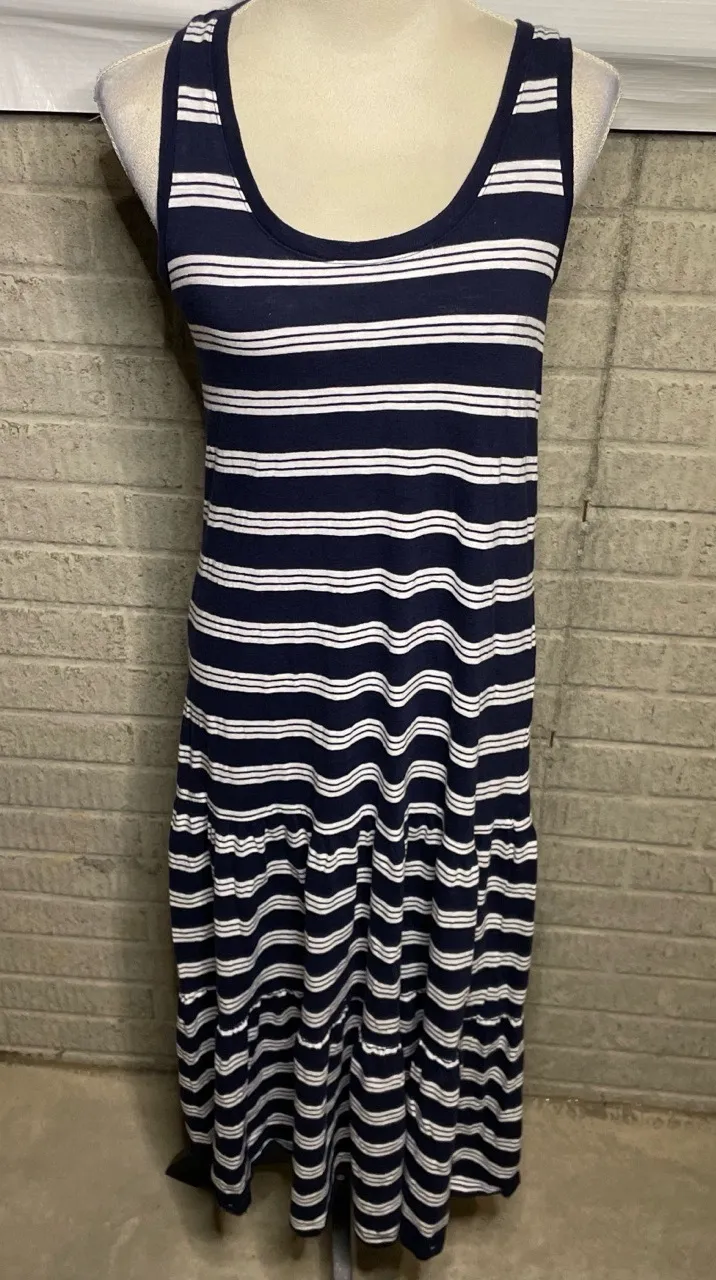 Gap Women Striped Sleeveless Tiered Ruffle Tank Maxi Dress Size Small Step out in effortless style with this versatile Gap maxi dress, perfect for warm weather or layering. Its chic striped pattern and flowy tiered ruffle hem offer a flattering and comfortable fit. Embrace easy elegance for casual outings or elevated everyday wear. Condition: In Like new condition. Size: Small Brand: Gap Type: Dress Style: Tank, Maxi, Tiered Ruffle, Striped, Sleeveless Features: Sleeveless, Maxi Length, Horizontal Stripes, Tiered Ruffled Hem Color: Navy Blue and White Striped Material: Tags: Gap, Women, Striped, Sleeveless, Tank, Maxi, Dress, Tiered, Ruffle, Casual, Summer, Spring, Flowy, Navy, White