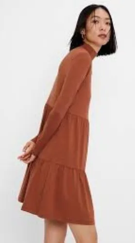 NWT GAP Women's Saddle Brown Long Sleeve Mockneck Stretch Knit Tiered Mini Dress Size XS