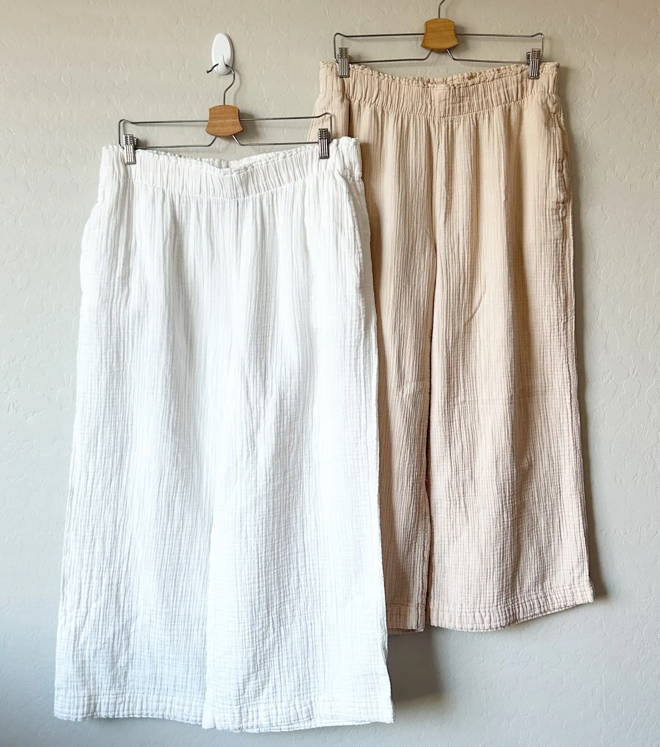 in Beige and White Good preowned condition, there is some runs in the cotton on the beige pants. D... Show more