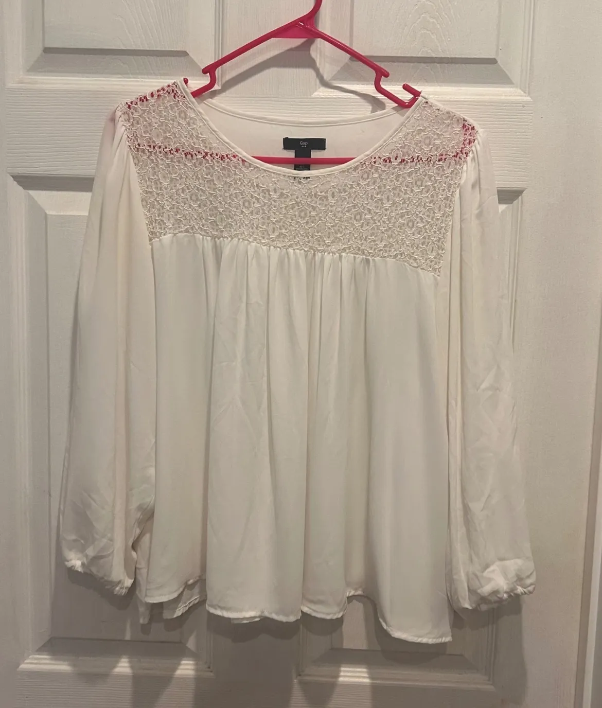 EUC. No flaws. Balloon sleeves. Slightly sheer. UA to UA 23" Length 22.5" Measured flat and appr... Show more