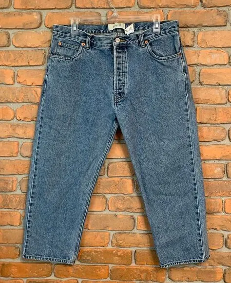 Medium wash blue Button fly High waisted Cropped length Boy Fit style Style # 696415 Vintage 00s V... Show more
