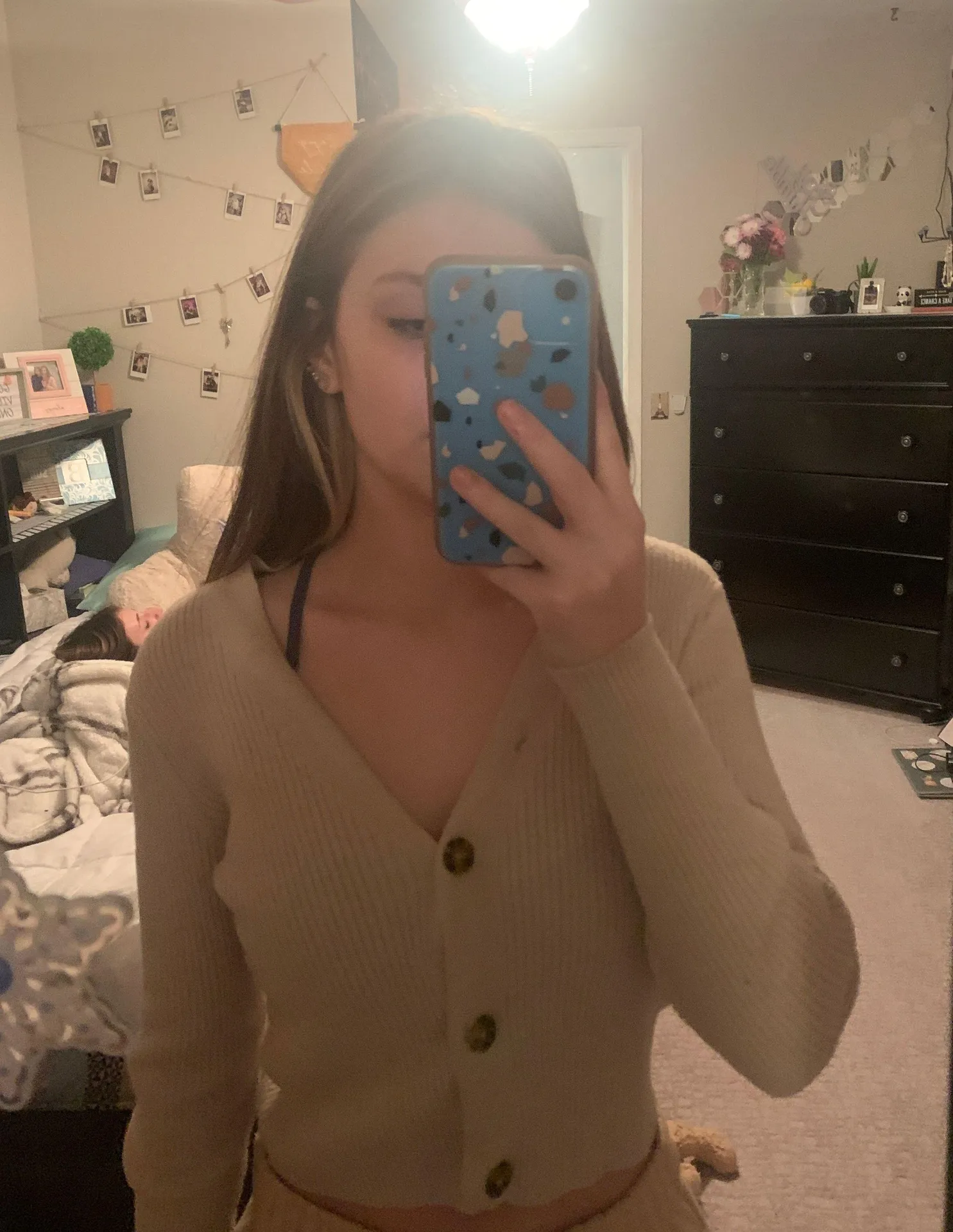 Button up cardigan kind of tight fitting soft fabric decent condition has some small holes in the f... Show more