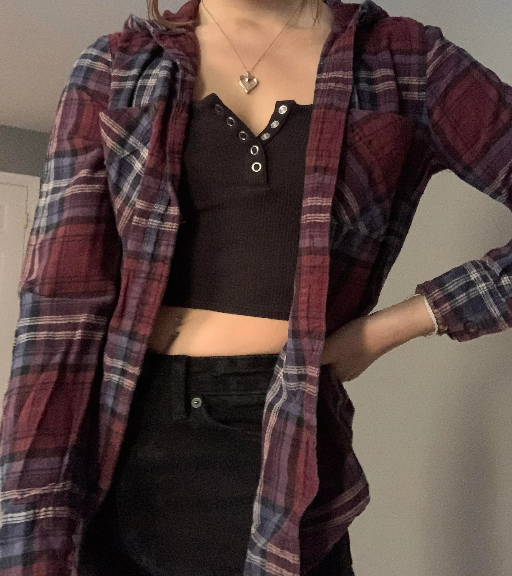 Reb and black plaid hoodie. Super comfy and great for layering. Good condition.