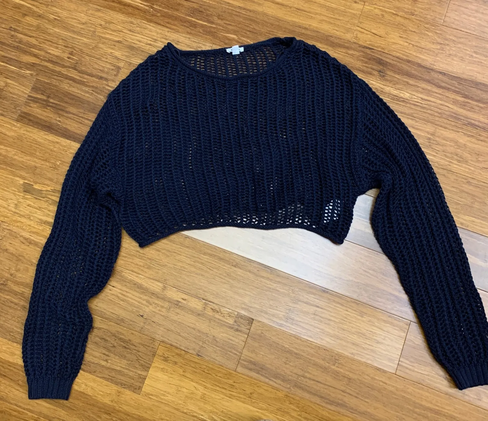 Navy blue knit sweater, a breathable crochet knit top designed for both comfort and style. This long... Show more