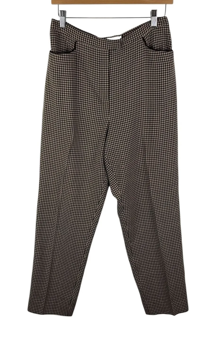 Garfield & Marks houndstooth continental pocket pants in a classic brown and beige pattern. These trousers offer a tailored silhouette with convenient front pockets and a side zipper closure. Perfect for a polished look at the office or a sophisticated outing. Style: Dress Pants Department: Women Material: Polyester, Rayon Leg Style: Straight Type: Pants Fabric Type: Twill Features: Pockets, Stretch Closure: Zip Pattern: Houndstooth Accents: Zipper Occasion: Workwear, Casual Waist Size: 29 in Fit: Regular Rise: Mid (8.5-10.5 in) Front Type: Flat Front Season: Fall Keywords: houndstooth, tailored, classic, business casual, workwear, sophisticated, patterned, womenswear, continental, pocket detail, chic, smart casual, Garfield And Marks, Vintage Pants, Houndstooth Pants, Y2K Pants, Retro Workwear, Made In USA, Minimalist Fashion, High Waisted Pants, Size 8 Trousers, Checkered Pants, Career Pants, Quiet Luxury, Office Chic, Academia Style, Side Zip Pants, Classic Fit Pants, Capsule Wardrobe, Fall Fashion, Structured Trousers, Tailored Pants, Indie Sleaze, 90s Style, Business Casual Excellent Pre-Owned Condition (see pics for details) Flaws: No visible flaws. Measurements: included in photos. Please compare the measurements to something you already own for a great fit! Fast shipping: Shipped out next business day! Please let us know if you have any questions!