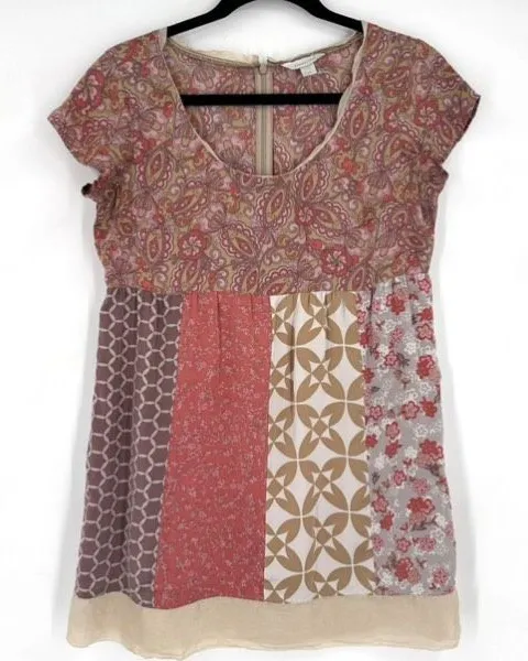 Garnet Hill 100% Silk Babydoll Tunic Top Blouse Empire Waist Milk Maid Boho Size: Petite Small Color: Multicolor patchwork print Condition: Good pre-owned condition This vibrant Garnet Hill tunic is crafted from 100% silk and designed in a flattering babydoll empire waist silhouette. It features a scoop neckline, flutter sleeves, and colorful orange and red patchwork prints with chiffon trim details. Lightweight, breathable, and elegant, it’s the perfect piece for warm weather and casual occasions. Details: • 100% silk • Chiffon trim accents • Babydoll style with empire waist • Tunic length • Patchwork multicolor design • Lightweight and breathable Key words Y2K inspired, babydoll, feminine, whimsical, romantic, Spring and summer wear, vacations, brunch, beach days, travel, and effortless bohemian-inspired outfits