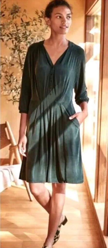 GARNET HILL Aria Cuprio Knit Dress Emerald Green Size Small Pockets Knee Length‎ - $35 - From Laura