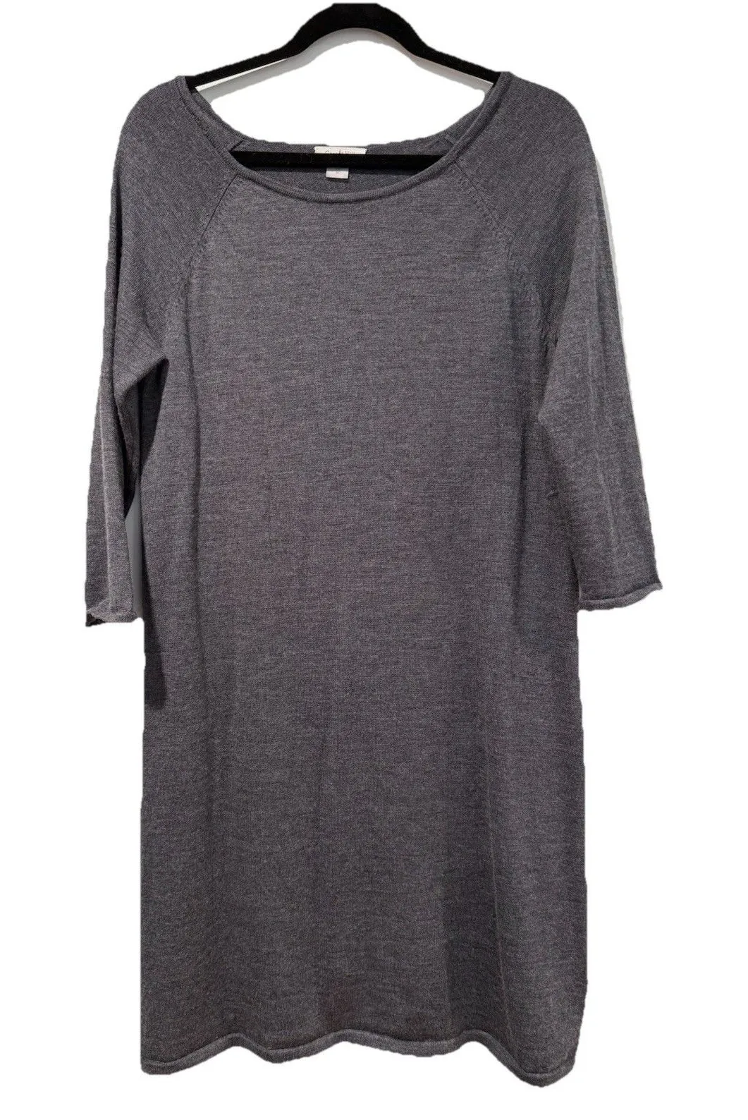 Garnet Hill Dress Medium Grey Merino Wool 3/4 Sleeve Minimalist Quiet Luxury · Size Medium · Materials 100% Merino Wool Measurements (Approx.) · Underarm to Underarm: 17.5 inches · Sleeve Length: 20.5 inches · Length from shoulder to hem: 37.5 inches Condition: Preowned, Very good, no stains/holes - see photos