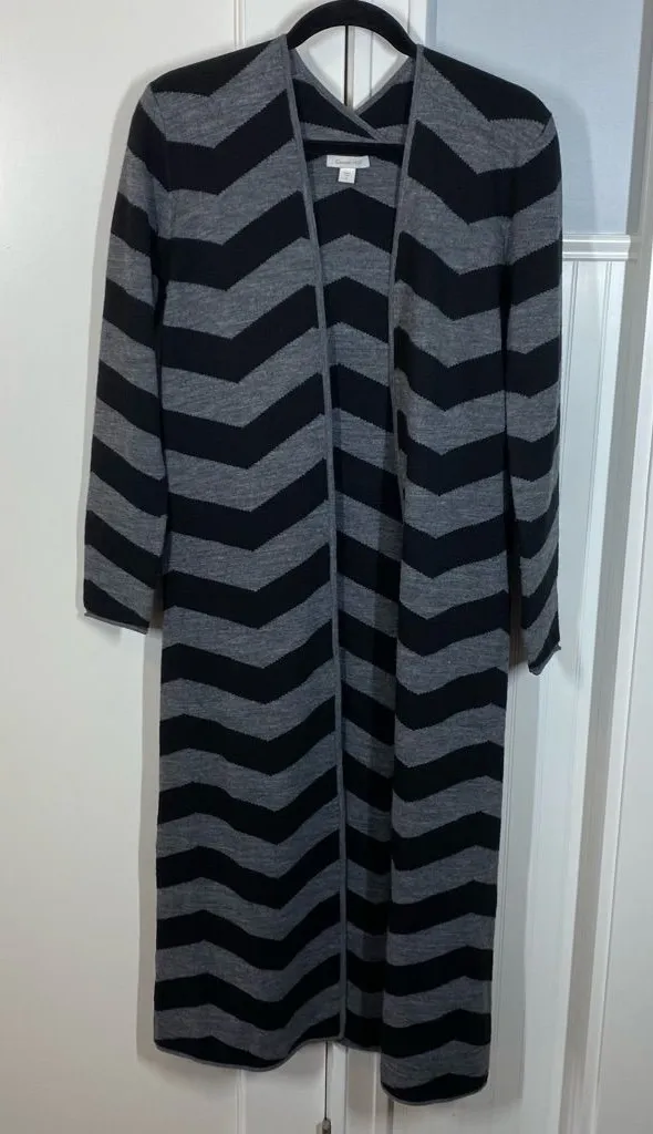 Garnet‎ Hill Wool alpaca Blend Black/Gray Striped Duster Cardigan size small Black - $37 - From Lauren