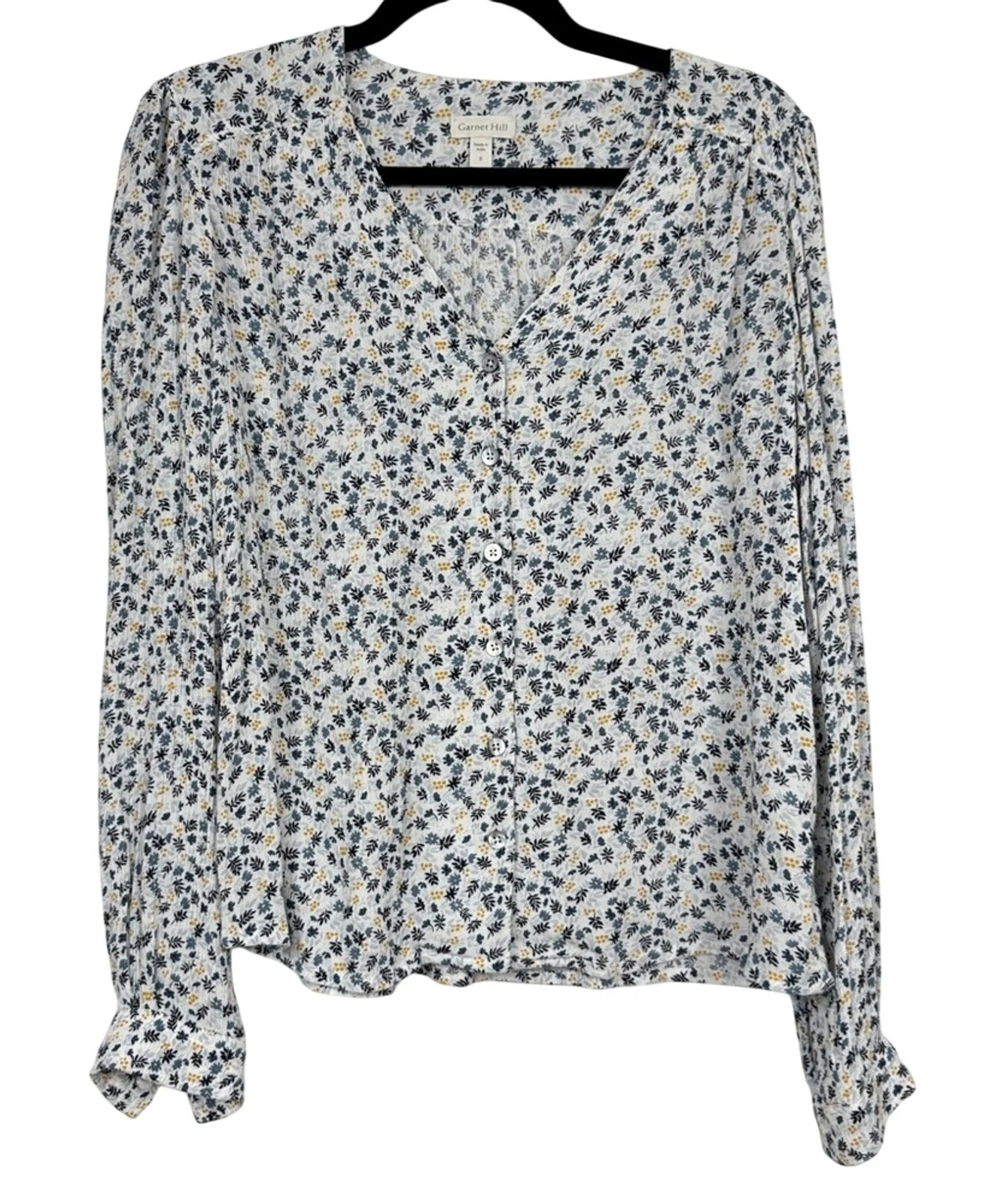 Garnet White Hill Blue Yellow Floral Blouse Womens 0 Shirt Casual Flowy Spring - $25 - From Lisa
