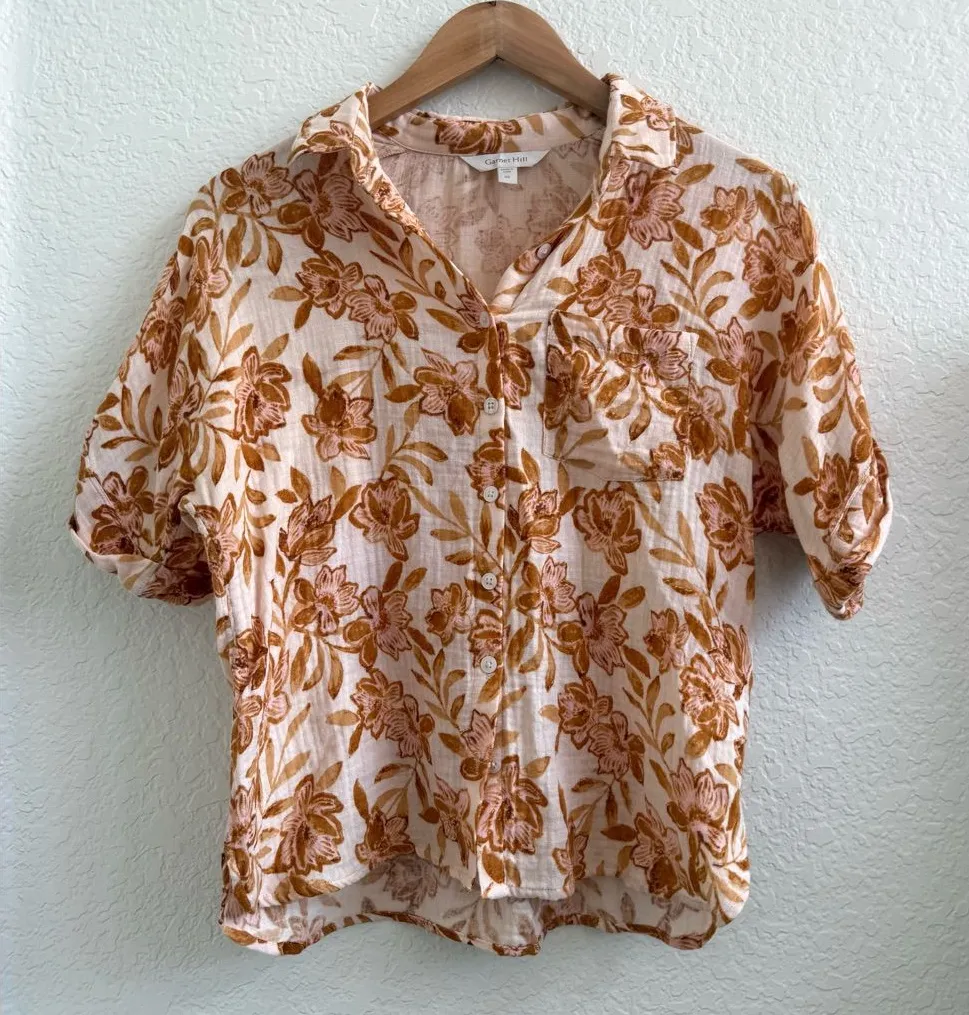In excellent like new condition. Size XS Garnet Hill Like New Vella Organic-Cotton Button-Down Bl... Show more