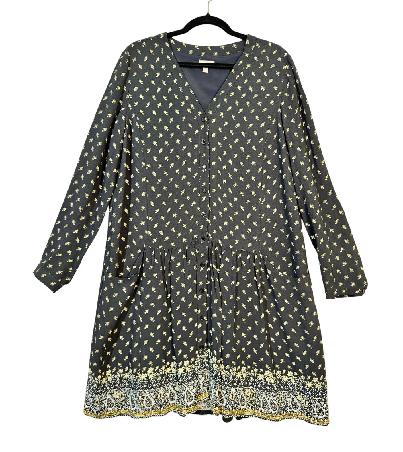 This Garnet Hill dress is a charming addition to your wardrobe! Featuring a delightful navy blue and yellow ditsy floral print, this drop waist shift dress offers a comfortable and stylish fit. The dress is in great condition and ready for its next adventure. Perfect for a casual day out or a special occasion, this dress is sure to turn heads! Size: 14 Measurements: pit to pit 21", length 40", sleeve length 25"