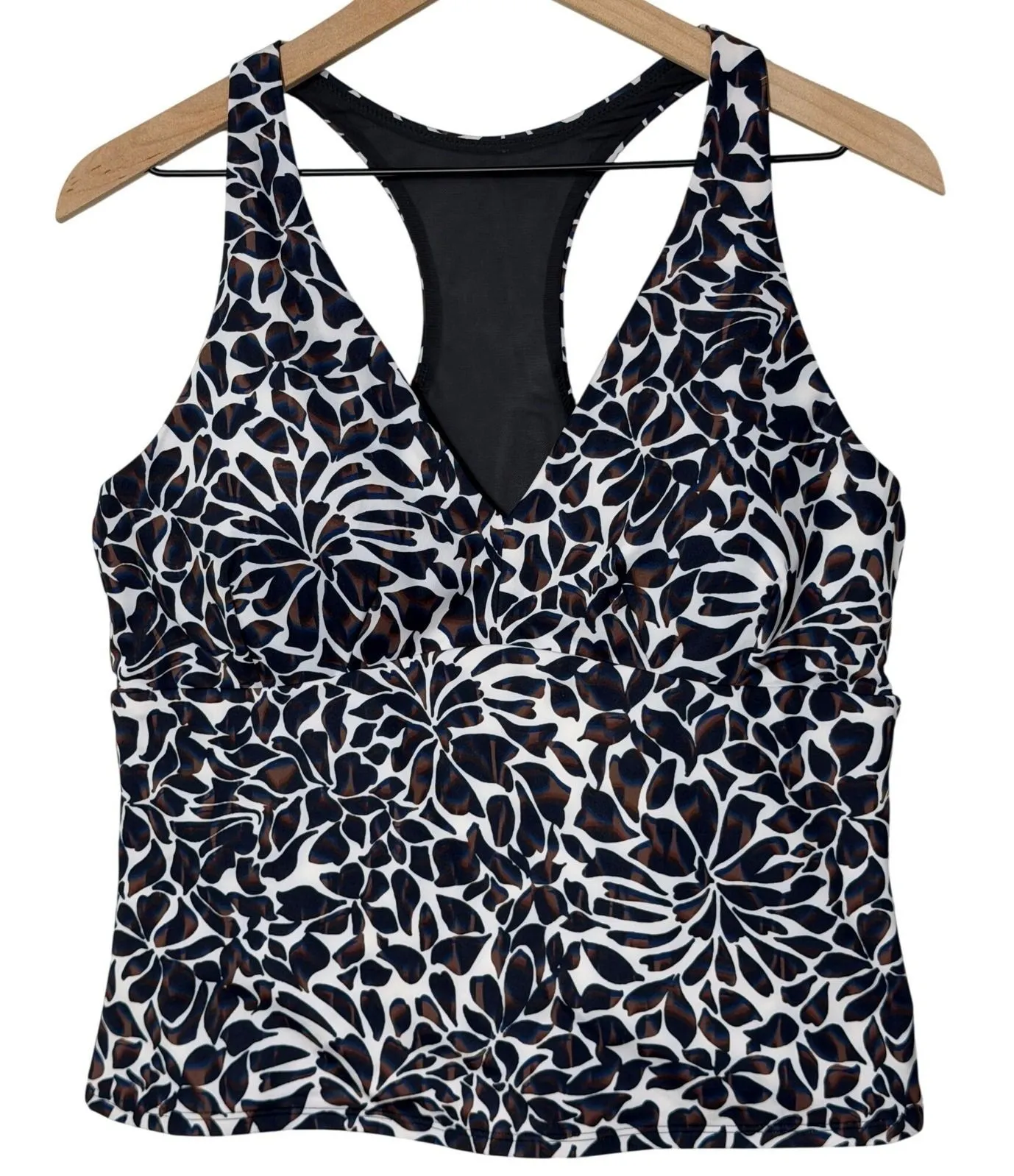 Garnet Hill tankini swim top in women's size 14, bold multicolor print in shades of brown, white, bl... Show more