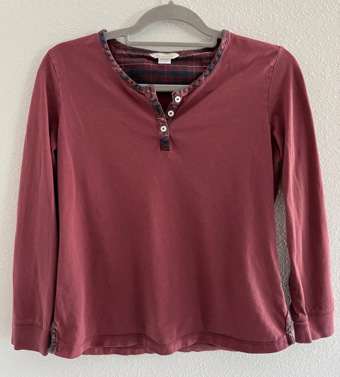 Garnet Hill Pajama Top Womens Small Burgundy Plaid Trim Comfort Lounge Cozy Red - $20 - From Nothing New