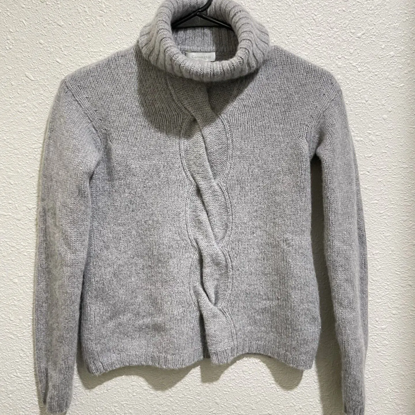 Excellent preowned condition. This sweater is a thicker cashmere than most. Dry, soft, and comfortable. Garnet Hill 100% Cashmere Color Grey Size XS Pit to Pit 15" Length 21" Sleeve 21" Shoulder 16" Hand Wash Dry Flat