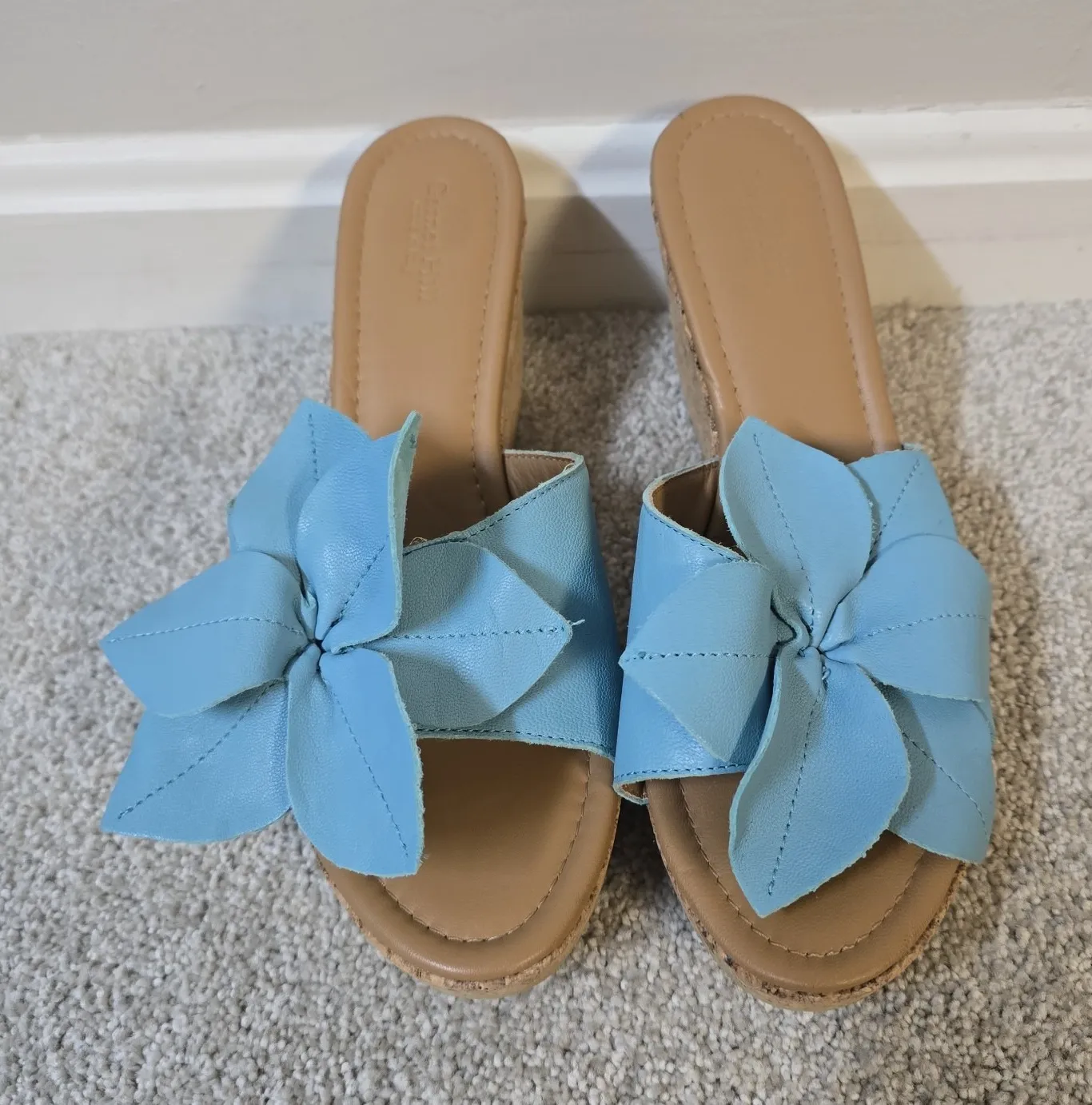 Step into comfort and style with the Garnet Hill Cara wedge sandals. Perfect for any beach getaway or mountain retreat, these size 8 sandals feature a charming floral pattern set against a serene blue backdrop. Crafted from premium leather, these sandals are designed to provide lasting support with a mid-height wedge heel that's just right for all-day wear. The bohemian flair of these sandals is exemplified in their detailed flower theme, adding a touch of whimsy to your outdoor ensemble. Whether you're strolling through a fall harvest festival or enjoying a springtime picnic, these versatile sandals are suited for a variety of seasons, making them a staple addition to your footwear collection.