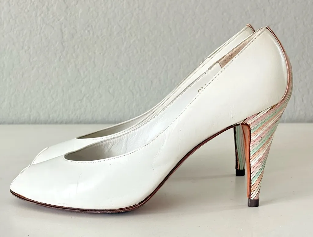 Garolini Women’s White Leather Y2K Peep Toe Pump High Heels Size 8 M Made Italy - $25 - From Tao