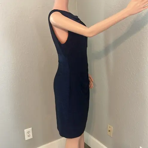 Adrianna Papell Crushed blue METALLIC JERSEY SHEATH Side Ruched DRESS Sz 12