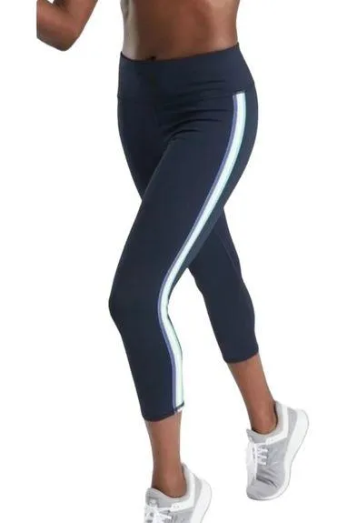 Athleta Navy Blue Contender Side Stripe Capri Tights Leggings Pants size Medium Excellent condition... Show more