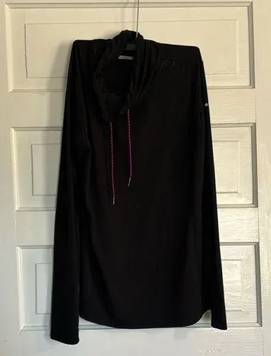 Size large. Bust aprox 19 by length aprox 26.5. Great for layering. One small pull in fabric as pict... Show more