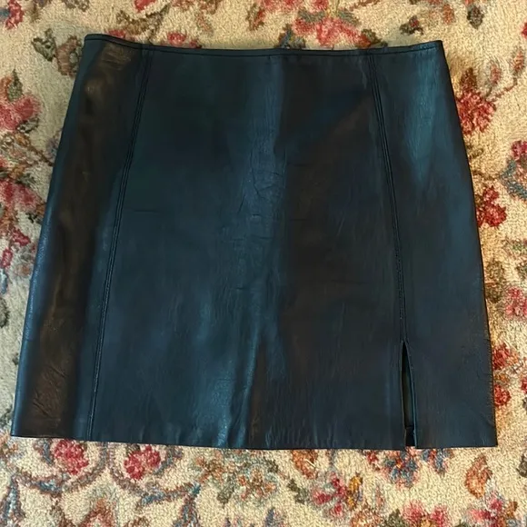 Sexy blue leather skirt, 80% sure it’s real leather but could be very good fake leather. Super cute for a night out! Gently worn no damage. No size, waist is just over 14 inches across at the top. XS/S bundle with other ♥️ items