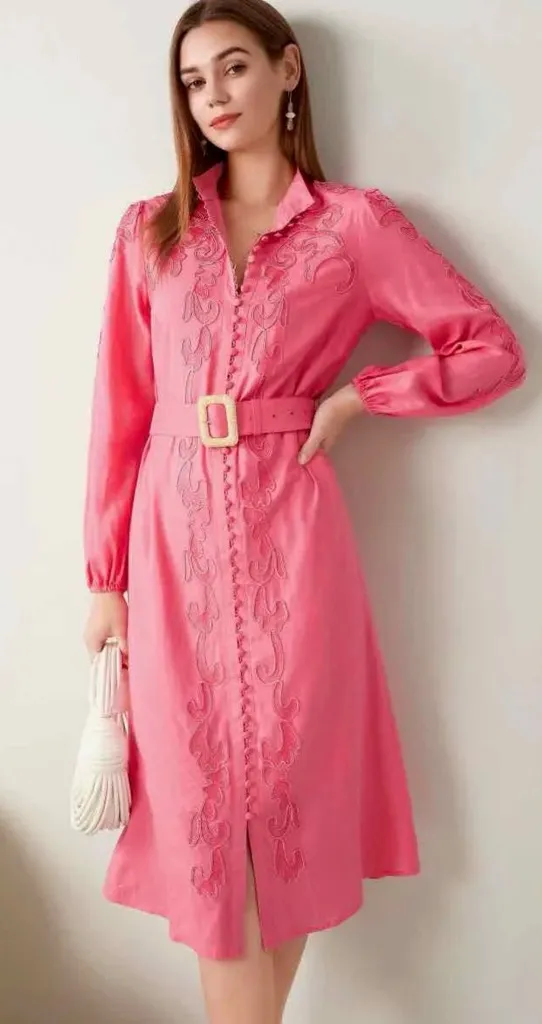 G.D.S By HELENAM Camellia Rose Pink Midi Sleeve Dress with Embroidery Sz S - $55 New With Tags - From Yesenia