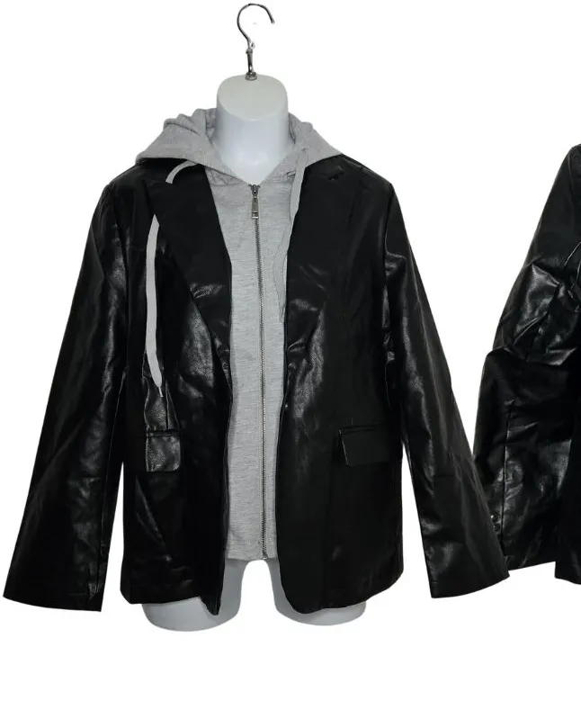 Elevate your style with this GeeGee glossy faux leather jacket! This brand new jacket features an integrated. Get ready to add a chic edge to your wardrobe. The glossy finish gives it a modern, eye-catching look. Perfect for adding a touch of urban flair to any outfit. Don't miss out – grab this stylish jacket today! Front zipper enclosure Pockets Hip length