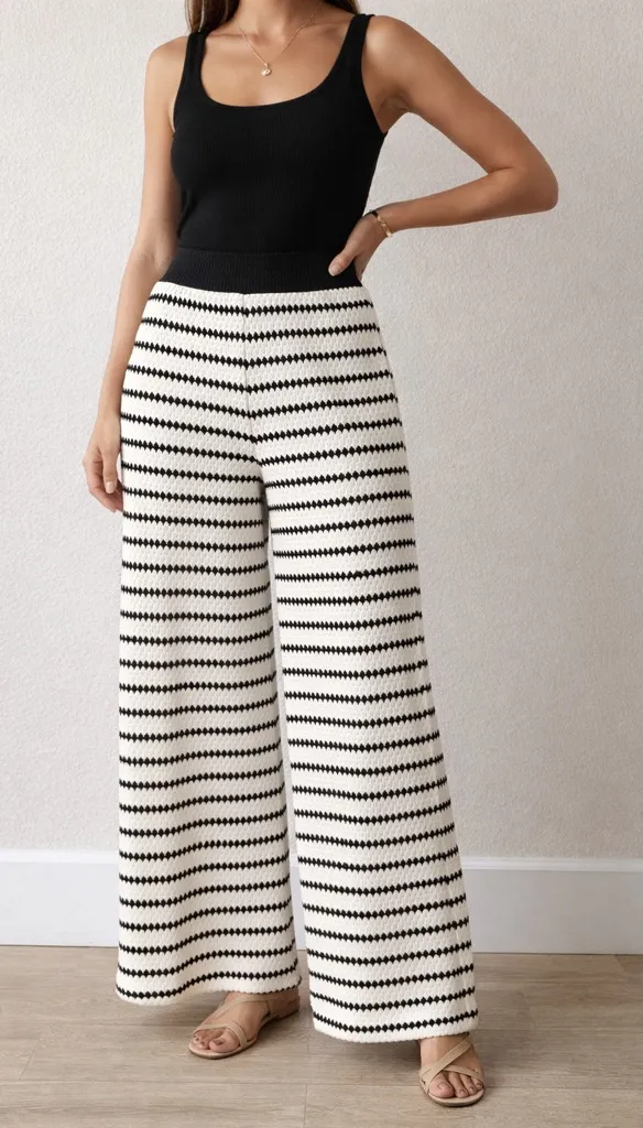 Size: Medium Excellent condition! Step out in style with these elegant black and white striped wid... Show more