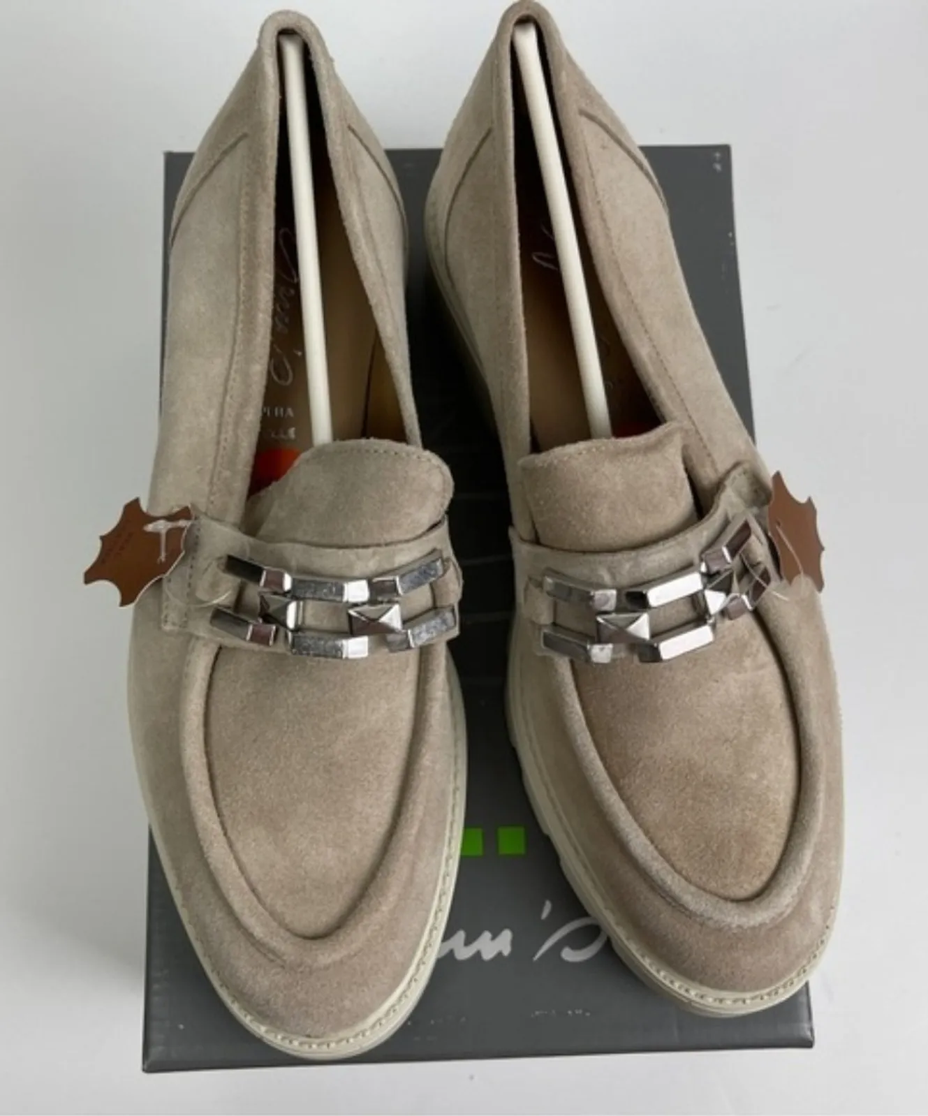 Description NWT GEMS slip-on flats/loafers in a versatile tan with a chic chain detail and an edgy c... Show more