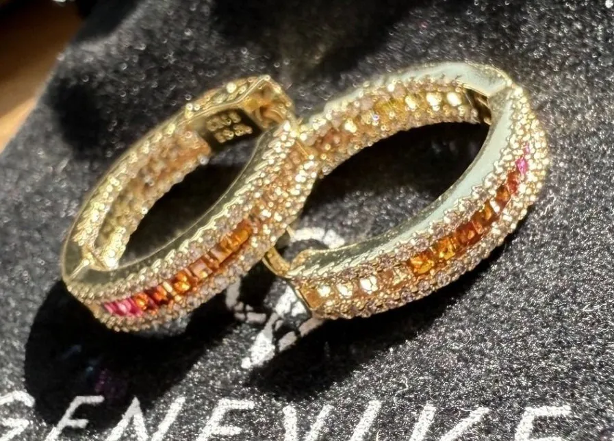 Sparkle with every turn in these captivating GENEVIVE hoop earrings. Adorned with a vibrant spectru... Show more