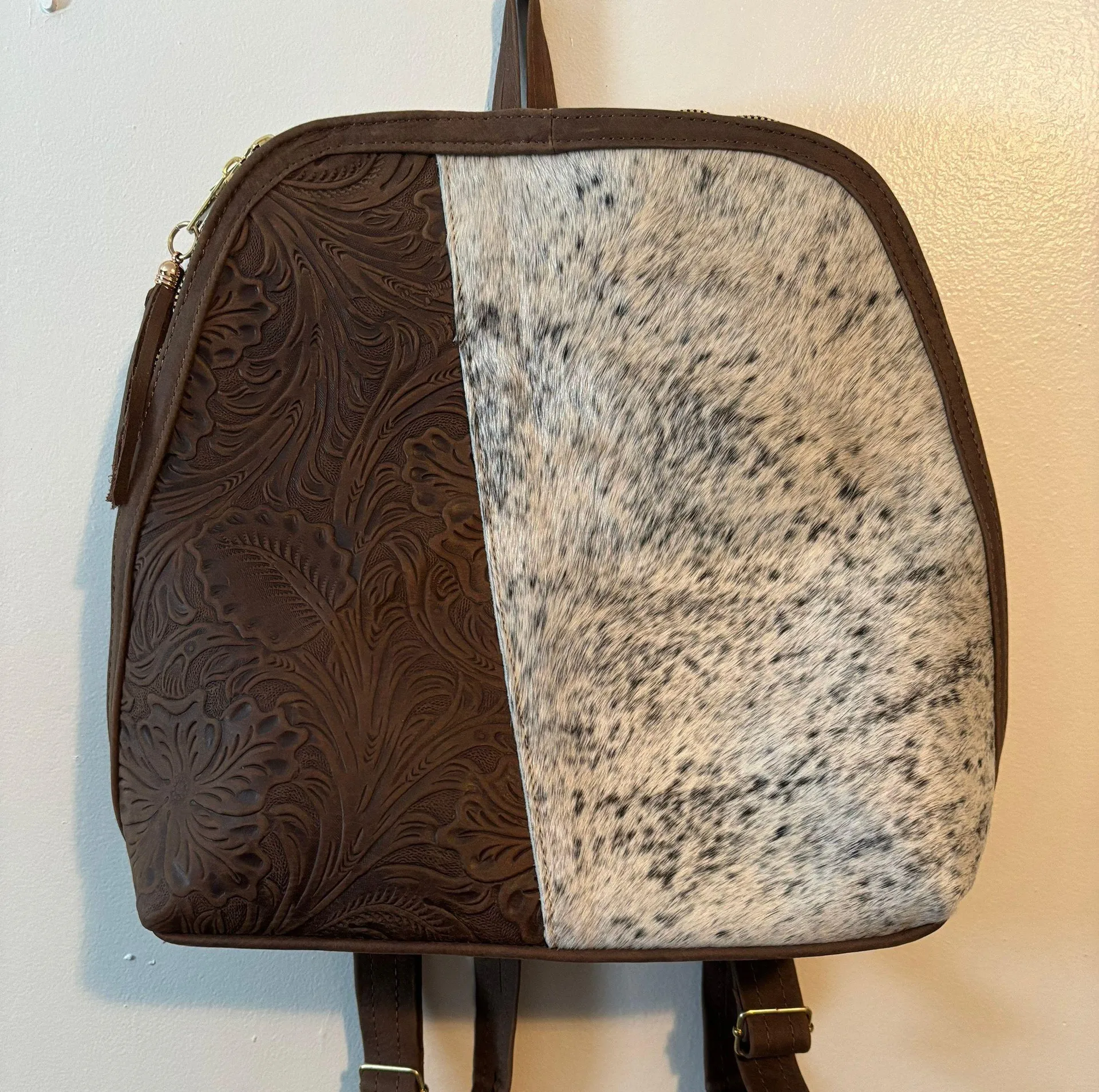 Genuine leather/ cowhide backpack.