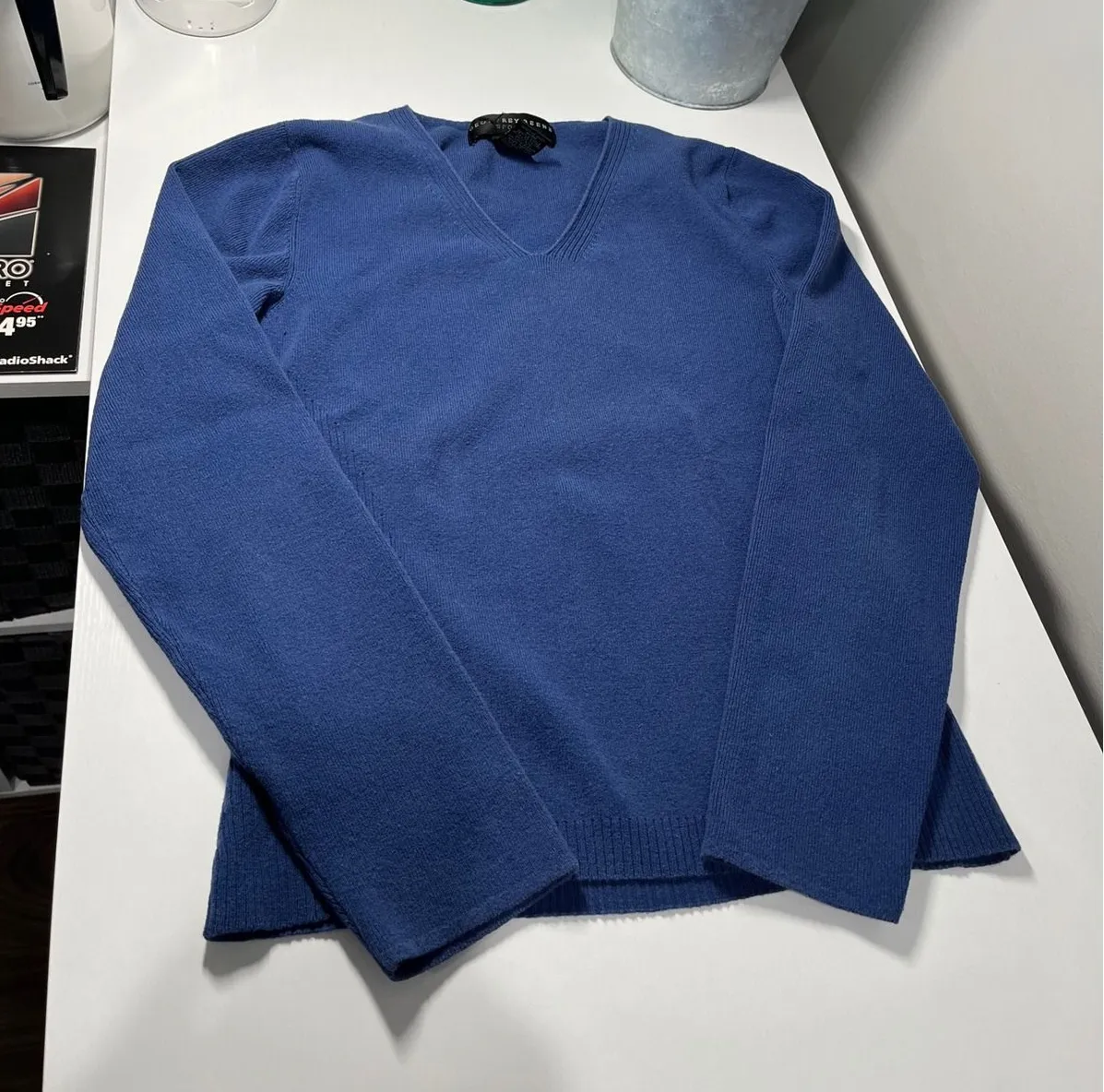 Geoffrey Beene Sport women's blue V-neck long sleeve knit sweater. Ribbed detail along the sides and... Show more