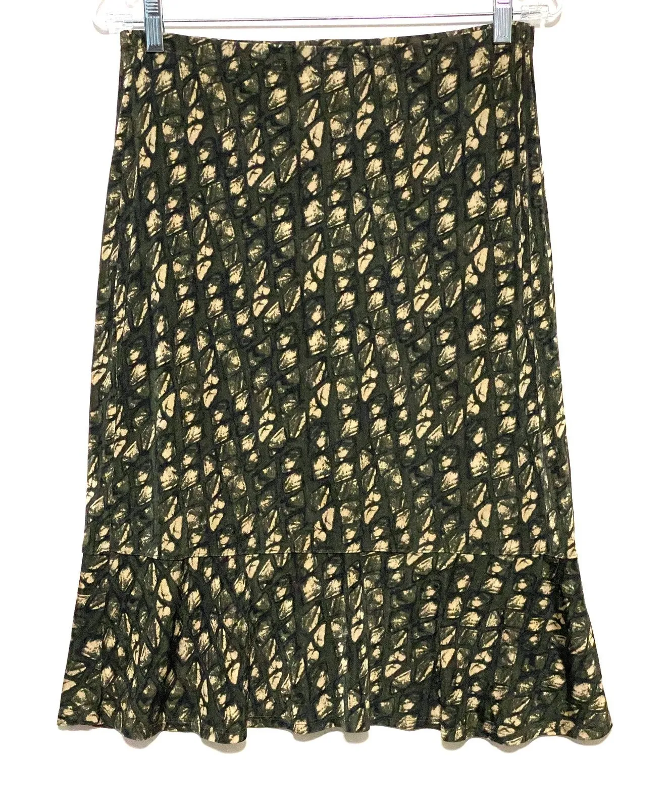 Condition: Nice, gently used condition. Measurements: Waist: 25" Hips: 34" Length: 25.5" Style: Stretch, Preppy, Classic, Casual, Modest, Sophisticated, Abstract, Olive Green, Artsy, Art To Wear, Maximalist, Flowy, Church, Work, Office. Shelf 19C