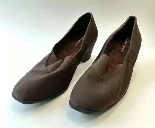 Georgeā€Ž Heels Womens 6 Comfort Start Loafers Pumps Wedge Black Fabric Slip On Brown - $14 - From Sheila