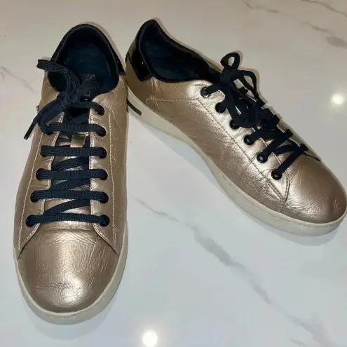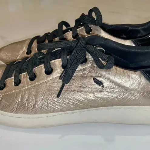 Geox Respira Gorgeous Gold & Black Leather Sneakers Gold leather upper w/ black patent leather accen... Show more