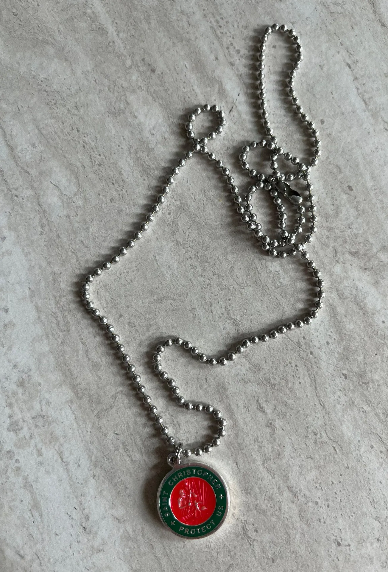 Take a piece of Southern California home with the Original "St Christopher Surf Necklace” from the company Get Back Necklaces. Super cute and beachy/boho surfer necklace. St. Chris is known as the protector of travel and was worn commonly by wanderers, adventurers, and surfers back in the 60's & 70's as a symbol of good luck and going steady. Green and Red Medium Charm (3/4”) Adjustable silver chain Water resistant/sweatproof In perfect/new condition!