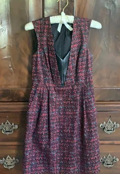 Smart red and black graphic Sheath dress with leather inset trim at neck. Please note, I cannot go... Show more