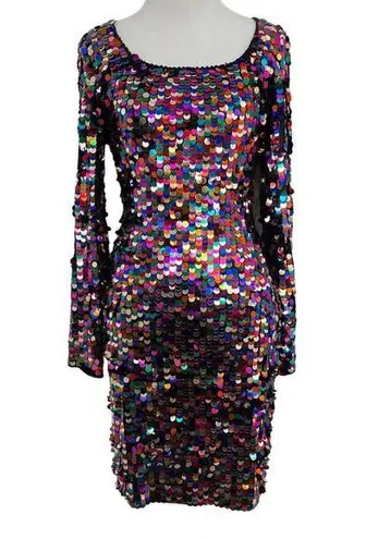 Oleg Cassini Black Tie Vintage Mini Dress Full sequin short dress Size 4 Fully lined Rainbow colors all over! Long sleeves Back zipper with eye hook at the top On the back of the left sleeve there are two rows of missing sequins about an inch long. See picture #6. It's hard to see! All the sequins are sewn at the top so they shimmy! The dress looks like its moving standing still. The perfect 80s party dress! Smoke free Daily shipping Thanks for shopping!