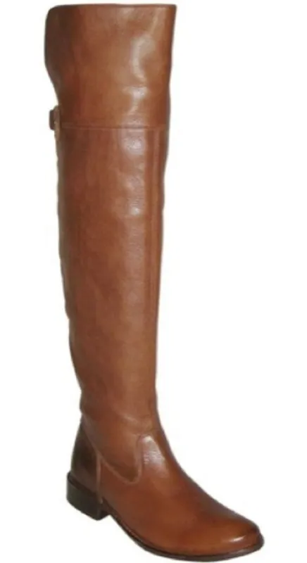 Over-the-knee leather riding boots with belted detail and a foldover cuff for a versatile look. Lea... Show more