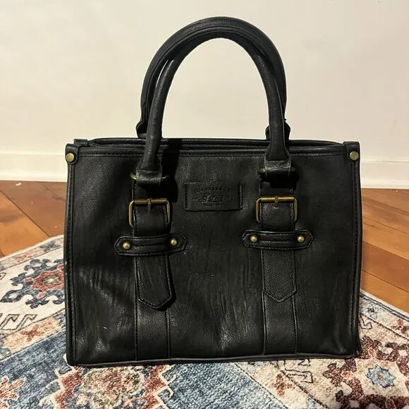 G.H. Bass & Co Black Vegan Leather Tote Handbag Purse Brass Hardware 13x10x6 - $16 - From Lindsay