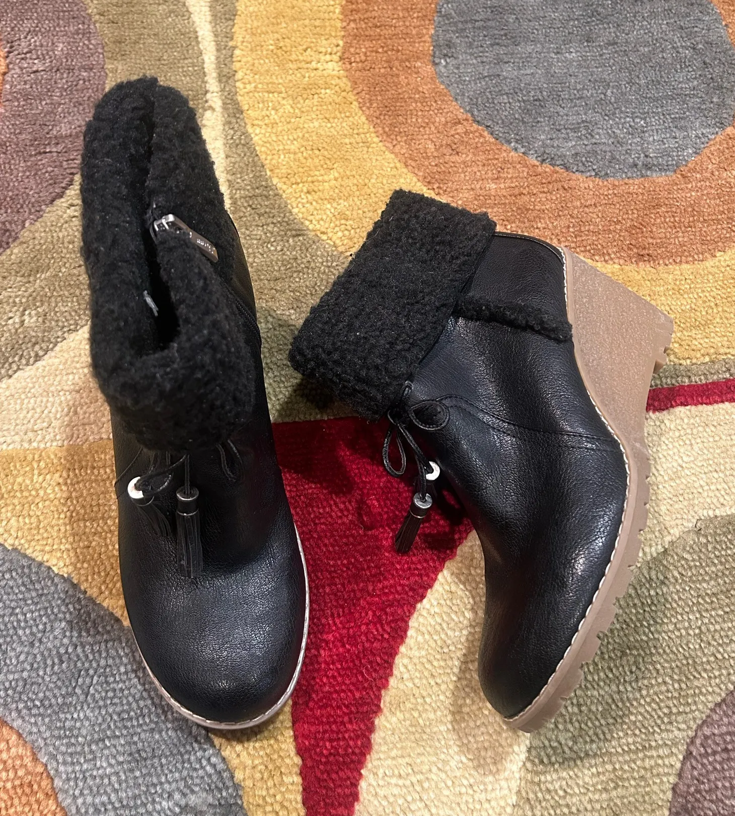 Brand New G.H. Bass Carroll Booties Boots Shoes Black Faux Fur Wedges Size 9 1/2 - $30 (82% Off Retail) New With Tags - From Emily