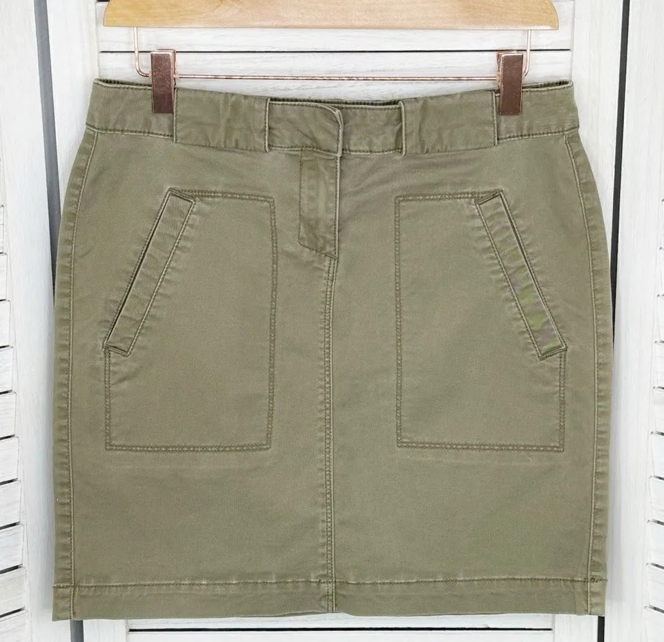 G.H.Bass Twill Utility Pencil Mini Skirt Size 2 Khaki olive green Cotton spandex stretch twill F... Show more